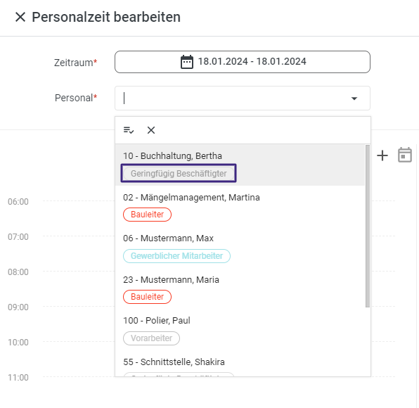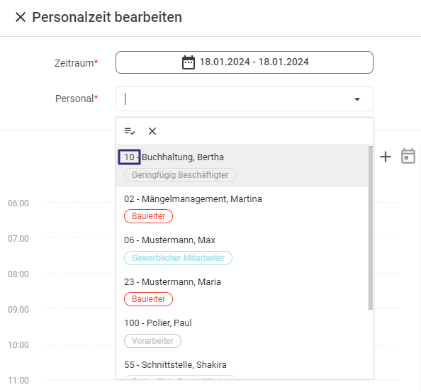 Hier wählst du, welche zusätzlichen Informationen dir zu einem Mitarbeiter in den Auswahlfeldern angezeigt werden. Auch In diesem Feld kann eine Mehrfachauswahl erfolgen.