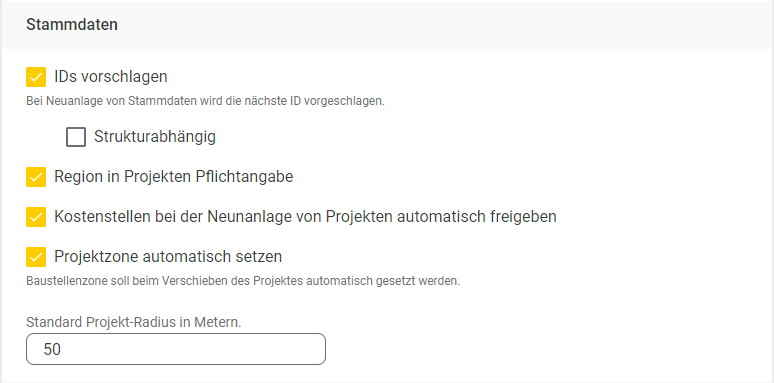 Mit der Einstellung Projektzone automatisch setzen erreichst du, dass bei Neuanlage eines Projekts automatisch die passende Zone zugewiesen wird.